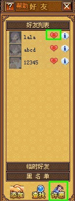 只要你已经到达60级,就能通过《天书奇谈》即将温情上线的“许愿瓶”系统向你的至交好友献上温暖祝福!你只需要进入好友面板,找到想要祝福的好友。如果你们之间的亲密度已经达到100,那么你们一定已经是同甘苦共患难的死党、闺蜜。这时,点击红色的心形按钮,你就能对当前好友送上你的祝福。