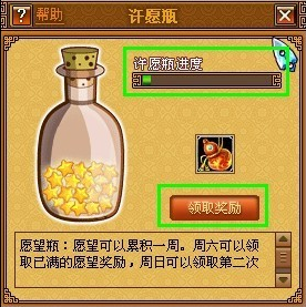 收到的祝福可以在一周之内累积。当许愿瓶被装满后,你就能领取填满的许愿瓶,最终还可以获得象征着大富大贵的富贵仙葫,金龙蛋、技能经验书、技能卷轴等珍贵道具等你来拿!