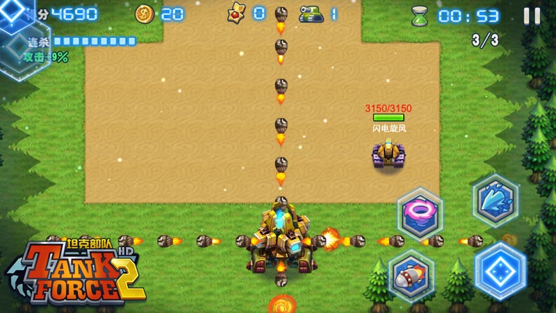 从《坦克部队!》到《坦克部队2》,游戏的基本玩法并没有改变,都是延续经典红白机坦克大战闯关和守卫基地的玩法,但正是这种经典的玩法设置,让我们在游戏中回忆起童年熟悉的味道。《坦克部队2》基本玩法传承经典,但是也有更多的创新元素,比如我们在CG中看到的强大坦克BOSS,还有能够自由升级改造坦克的装备和技能系统,除此之外,游戏还支持在线竞技玩法,让玩家之间可以进行激情无限的坦克对战。