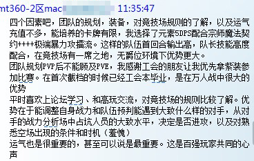 团队规划PVP后不能顾及PVE,我感谢工会的朋友让我优先拿紫装参加比赛。在首次截档的时候已经工会本毕业,是在万人战中很大的优势。平时喜欢上论坛学习、和高玩交流,对竞技场的规则比较了解。