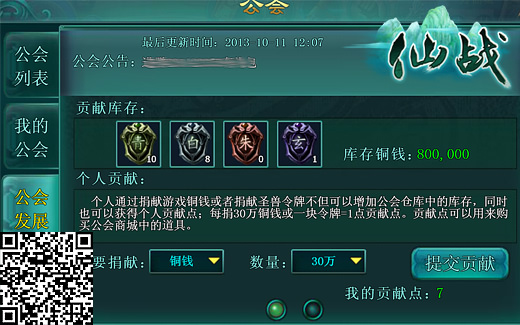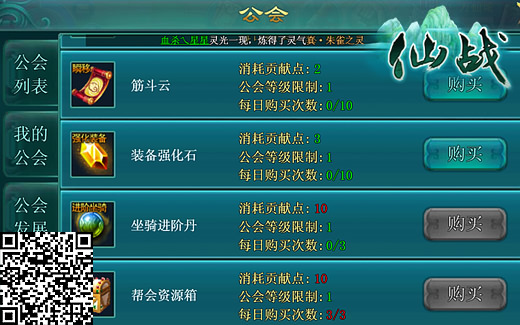 “朋友一生一起走”,在《仙战》里度过的修仙人生,有你相伴,其乐融融。还没有加入公会的玩家们赶紧找个有爱的大家庭,领取你应得的福利吧;已经有公会的孩纸们要好好跟兄弟们相处,好好做公会任务,好好跟土豪们套近乎,我为土豪献菊花……啊咧,好像有哪里不对……