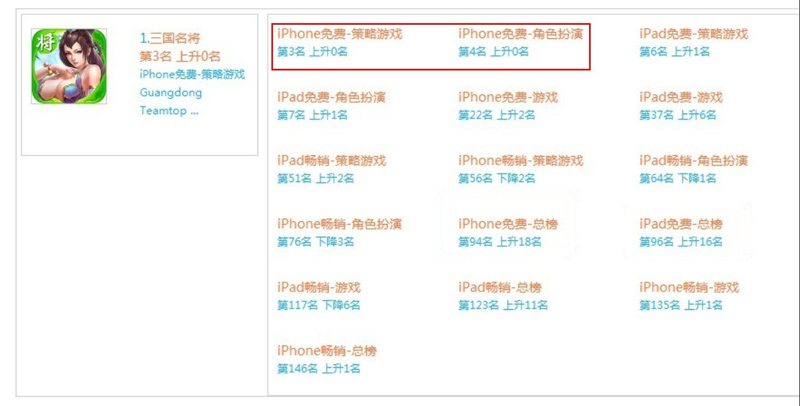 导 读: | 来势汹汹,无人可挡,天拓游戏年度大作《三国名将》今日爆发性冲榜,App Store角色扮演游戏榜冲至第4,更是在策略游戏榜上占据前3,总榜一夜之间上升300多位!面对这样猛烈的冲榜 |