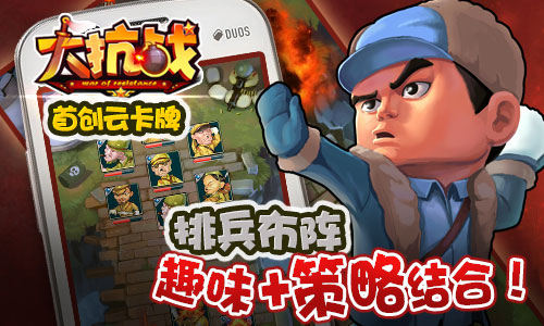 真英雄,新对战!中国第一抗日卡牌手游《大抗战》超动态官网首次曝光,大气震撼的抗战画面实时呈现!游戏首创云卡牌系统,通过Q版画面重新诠释热血抗日时代,200余位卡牌将领全线加盟,百变兵种搭配、云阵型策略组合、战役副本、难度闯关等多内容出击,带你全方位多角度感受一部大型人文历史战争手游巨作。