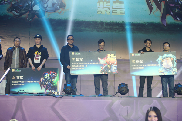 卓越游戏公司合伙人姚光石给冠军颁发宝马豪车大奖