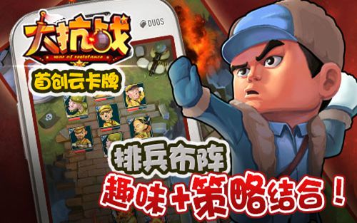 《大抗战》是中国首款Q版抗战题材卡牌手游,游戏内唯一的敌人即日本侵略者,玩家将化身抗日将领,与历史抗日英雄们一起,开飞机架大炮,保卫家园驱除日寇。