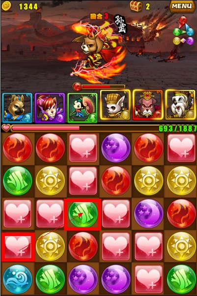 最后武将技能也是恢复生命的一大有效手段,这里面包括了直接回复和间接回复。直接回复中有的可以恢复一定数值,有的按百分比回复,有的直接满血回复。而间接恢复中,一般都是把某些属性宝石变成生命宝石,从而再用消除爱心宝石的手段回复。