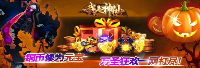 Happy Halloween!万圣节大狂欢盛大开启!不过在仙界,众仙们不玩无趣的南瓜灯,也不会为了几颗糖果而捣蛋~天庭有旨,众小仙在万圣节将获得天降万圣节大礼包,尽享万圣仙界狂欢!11月1日万圣节期间,只要小仙们在11月1日当天登陆仙界,就能获得“万圣节大礼包” ,铜币修为元宝声望尽收仙囊,万圣狂欢一网打尽!