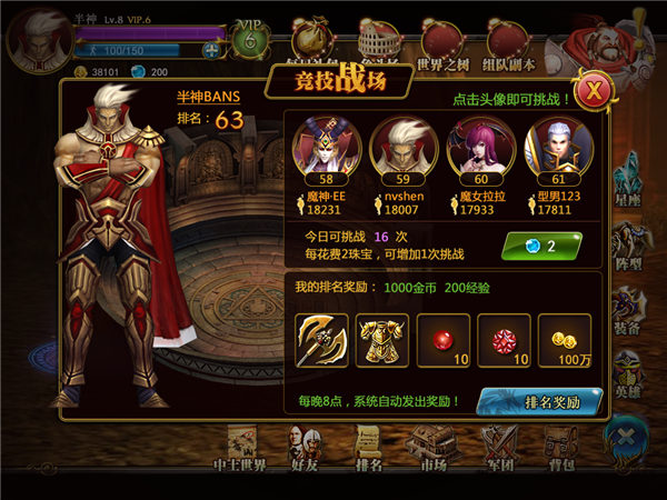 普通玩家和RMB玩家之间的平衡历来是游戏最难掌控的部分,《众王之戒》的制作人员在这方面提出了一个新理念,那便是:让普通玩家爽,让RMB玩家更爽,真正达到你爽我爽大家爽的运营至高境界。为此,我们精心为玩家打造了福利系统,每天免费赠送珠宝、金币,真正让平民也享受土豪的待遇。当然,如果你觉得《众王》带给了你真正的快乐,也很感谢你投入一些钱来对我们的努力表示支持!