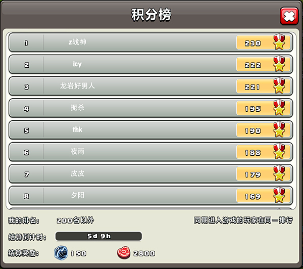 3、排行榜随时更新,并根据当前排名更新奖励道具;