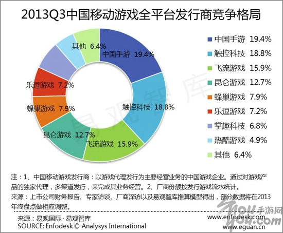 2013 Q3移动游戏发行商Top3:飞流游戏
