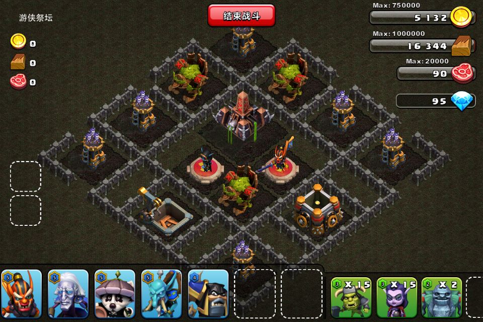 1、在防御建筑右侧引出贱剩,招出DK和小Y消灭之。