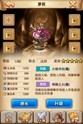 外表乖巧,血液里却流淌着惊人的秘法能量的黑暗之女——萝莉出身于魔法之家,从小就接受了严格的魔法训练,熟练的操纵法术攻击敌人,用熔岩护盾保护自己。对火焰拥有强烈的渴望,掌握着终极火焰奥义的她更能召唤出恐怖的烈焰泰迪熊使敌人置身于火焰地狱。
