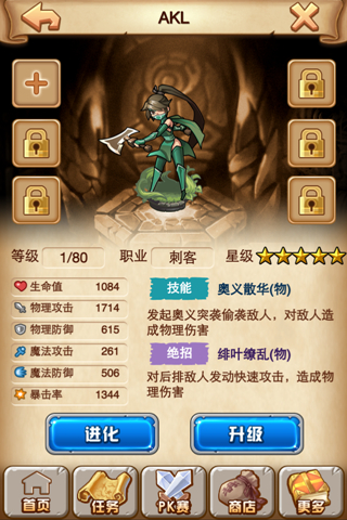 吸收日月精华的AKL舞擅长十字镰刀,在舞出最华丽的暗影乐章之时,早已将刺客印记深深的嵌入敌人的心脏,并在瞬间使敌人身首异处。相当高的暴击率使得身板柔弱的英雄很难熬过AKL两个回合的攻击。