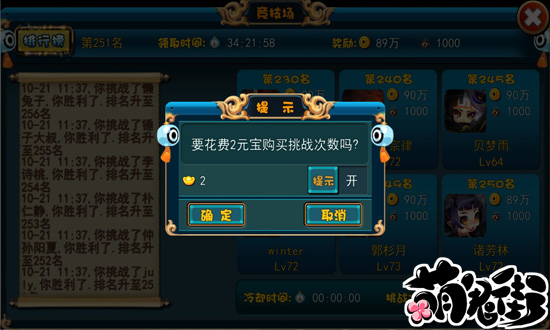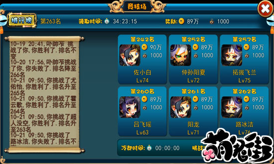 大家在竞技场可以从《萌鬼街》提供给大家的六人当中挑选一人进行挑战,挑战成功后,你就可以占据战败者的原有名次,并能获得经验和金币奖励!