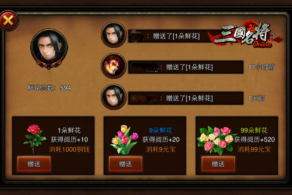 人气手游《三国名将》——在这里就可以给女神献花啦