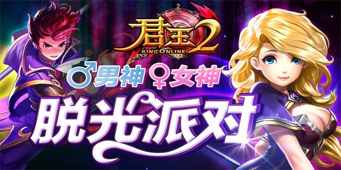 《君王2》光棍节脱光派对闪耀巨献,进门前是男屌丝女汉子,进门后摇身一变男神女神!我们为您打造全新社交环境,畅爽游戏,边玩边看如画风景,美女玩家排队等您牵走,还有更多类型男神陪您身边共渡青春。劲爆副本打boss,野外草丛来谈情。来吧,尽情呐喊:我光棍我存在!男神女神齐欢聚,神马high歌都不算事!海天盛筵那算啥?在脱光派对的光环下,那就三个字:弱爆了!同时这也是光光明明们一次千载难逢相亲好机会,也许顺便打酱油的您能遇上人生的另一半呢!