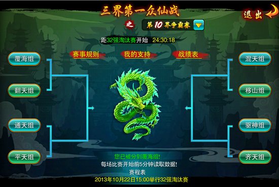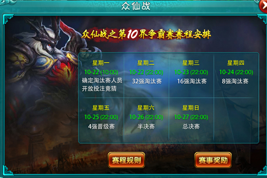 众仙会采用紧张刺激的淘汰、晋级赛制,按时间先后分为同服争霸赛和跨服赛两个比赛。