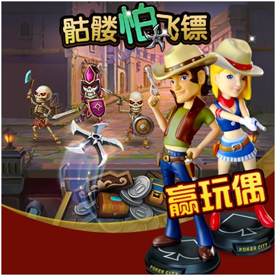 活动内容:玩《波克棋牌》骷髅怕飞镖,拯救牛仔,拿精美玩偶。小伙伴在游戏内点击攻击区域,发射飞镖攻击怪物;怪物死亡后,就有一定概率掉落杰克玩偶币、波妹玩偶币;