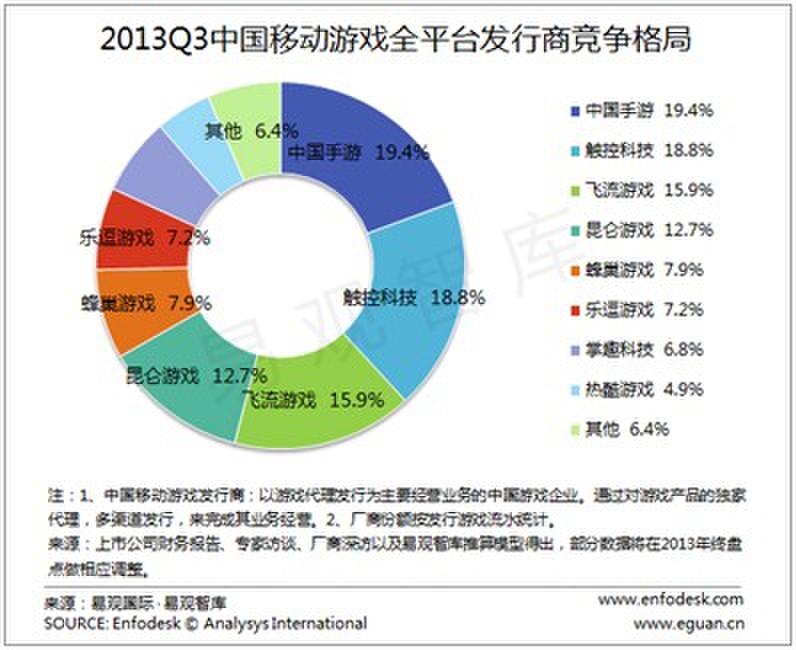 公开信息显示,另外一款热门手游,触控科技旗下的《捕鱼达人》已经生存了三个年头,收入排名依然靠前。易观国际的报告显示,触控科技在今年第三季度的发行市场份额排名第二。