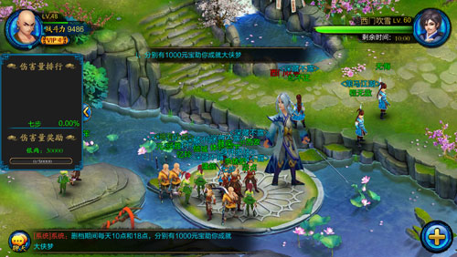 在封测期间,《叫我大侠》每天下午4点和晚上9点都会开启对西门吹雪和独孤求败的大BOOS击杀战,每次大BOSS击杀战都异常激烈,数百玩家同时竞技,场面震撼。除了大BOSS击杀战,玩家间的PK站--黑白决也在每天晚上8:30-9:00之间进行,竞技场人潮汹涌,玩家享受到了酣畅漓淋的PK快感!