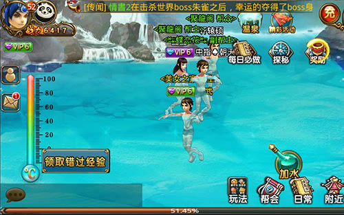 言语调情完毕,接下来就是添油加醋的身体上进一步亲密接触了!在现实生活中或许需要鼓起极大的勇气处心积虑去设计时间地点事件,在《梦幻仙界》中则早为你安排好一切,那就是——温泉系统!