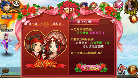 陷入爱情之中的女人都是盲目而缺乏安全感的,所以,《梦幻神界》“脱光”攻略的最后一步:许女神一个终身的誓言,和女神步入神圣的婚礼殿堂,结为夫妻,从此开始夫妻档行走江湖,携手匡扶正义、铲妖除魔吧!