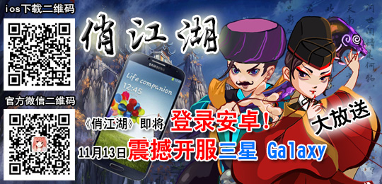 11月13日,手游巨制《俏江湖》安卓版震撼开启!届时新服“剑啸九天”亦将同时开启!此次内测将在安卓平台展开,为了让玩家更好地体验游戏,官方精心准备了丰富精彩的游戏活动,三星Galaxy、豪华大礼包、海量元宝回馈玩家!