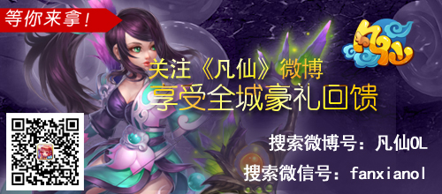 紧随着双十一的节奏,想必媳妇、女友已经把家败的差不多了,《凡仙》为安抚广大玩家,举办了全城豪礼回馈活动,玩家只需关注《凡仙》微博,参与大转盘活动,将有机会获得1111元宝卡大礼金、福满天下礼盒等等大礼。