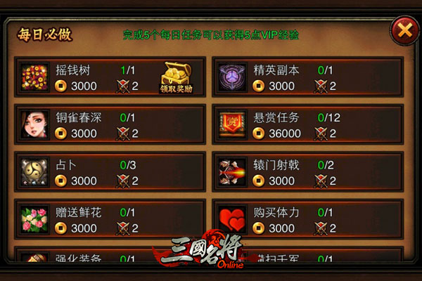 人气手游《三国名将》——日常活动,也有海量铜钱