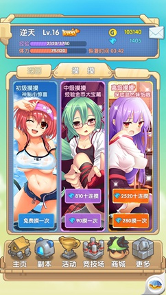 那么“摸摸”到底是怎样进行的呢?简单说来,摸摸就是一个摸取妹纸的过程,分为初级、终极、高级三个等级,每个等级摸到的东西有所不同。初级能摸到的是普通妹纸(一到二星),中级可获得金币卡或经验卡,高级则能摸最低蓝色品质(四星级)妹纸,摸到极品五星妹纸也是有可能的哦!