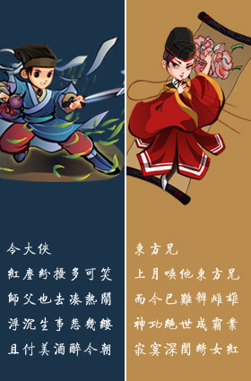 其次跟大家见面的是两位大腕——令大侠和东方兄。不同于硬派写实的武侠类网游,《俏江湖》用清新的风格诠释了各位江湖上的英雄侠客。为什么要单说他们,就因为这两位现在可是各位玩家追求的新宠。