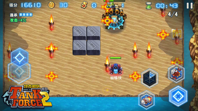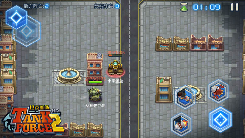 《坦克部队2》创新性的推出了竞技场模式,玩家可以挑战其他玩家的坦克。坦克竞技可不仅仅是对轰,在闯关模式中锻炼出的各种能力在这里得到了综合考验。神级走位、假动作骗技能、揣摩心理提前释放技能等,种种高端玩法在这里很是常见,只要反应够神速,低等级坦克逆袭是很正常的事情。竞技场确实是一个锻炼智商的好地方,麻麻再也不用担心小编反应慢了。