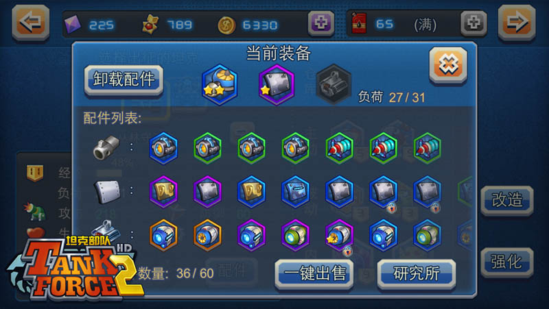 《坦克部队2》在红白机《坦克大战》的基础上进行了大量创新,比如特有的坦克改造系统,玩家可以为坦克自由配备各种炮筒的配件,进一步强化坦克属性。除了攻击防御等基本属性,还要考虑配件的重量,在有限的坦克载重条件下,玩家需要精打细算,为心爱的坦克搭配合适的零件,再配合各种主被动技能,就能打造出最适合自己的坦克英雄。