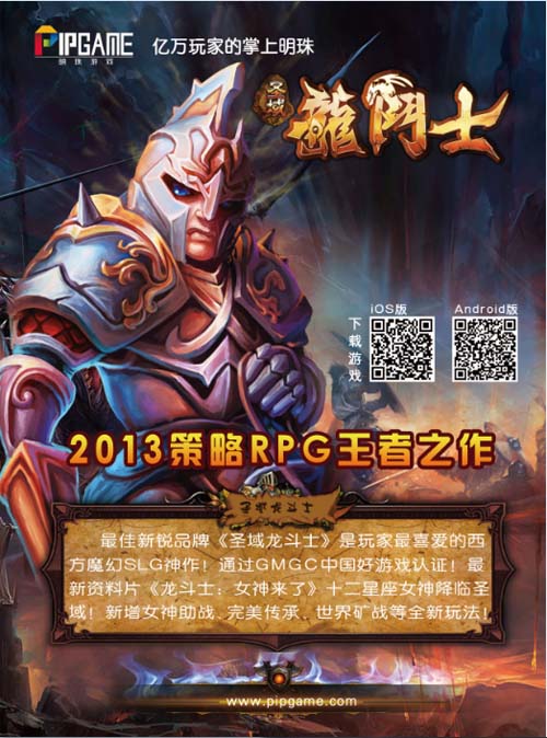 《圣域龙斗士》是基于明珠游戏自研引擎Mango开发的策略RPG。近期通过超过百款Android真机测试,获得了GMGC中国好游戏认证!11月11日,《圣域龙斗士》首部资料片《龙斗士:女神来了》全平台上线,十二星座女神引领全新战争策略潮流!新增女神助战、完美传承、世界矿战等全新玩法,更让玩家在享受细腻浓郁的西方魔幻世界时,随时发起酣畅淋漓的战斗!