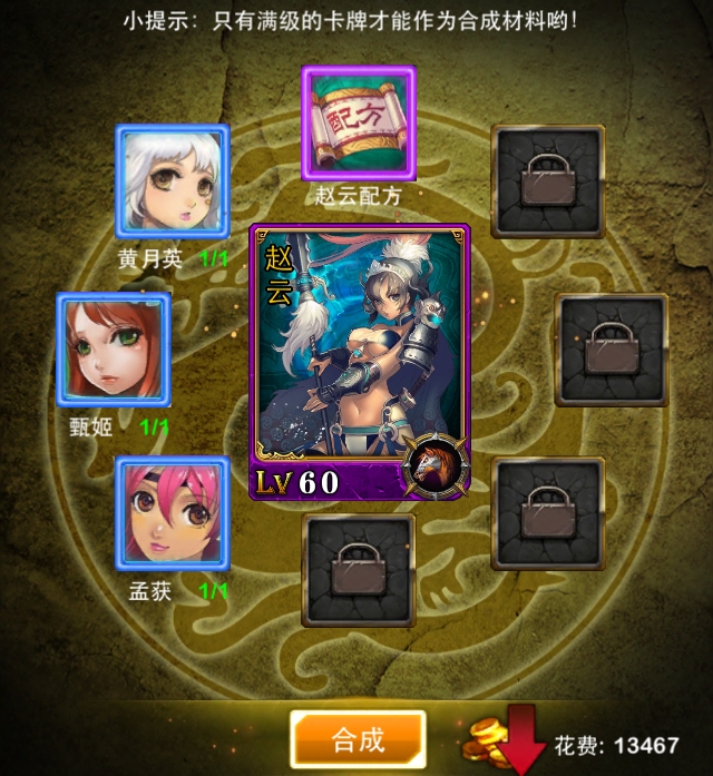 异性只为传代,同性才是真爱,《一姬当千》秉承绅士酷爱合体的理念,带来更方便的卡牌合成系统:普通卡牌只要满足配方要求,就能够合成稀有度更高的卡牌,突破等级界限的同时,新合成卡牌会继承原卡牌的等级,免去了重新练级的烦恼!