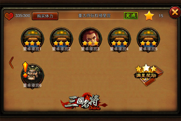 在“董卓寝宫”剧情里,玩家要历经6场打斗场面,而每一场成功挑战,都能获得大量铜币、海量经验及用于提升实力的星尘。最后一关,就是挑战终极BOSS董卓。董军虽然人心散尽,但董卓仍然是个悍将,玩家们还是要小心应对。让小编偷偷告诉你,到最后的紧要关头,貂蝉妹纸和吕布大帅哥,会站出来助你一臂之力,成功击杀董卓。