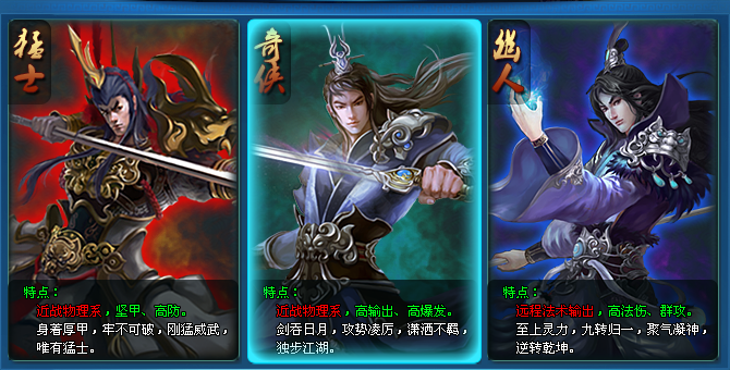 本次封测开放的职业共有三个,分别是猛士、奇侠、幽人,其中猛士和奇侠都属于战士职业,而幽人属于法师,另外还有职业处于开发状态尚不对外,三职业的本职技能均有十个,其中每个职业的基础技能会跟随主线任务的完成而学习,但大部分技能均要靠怪物掉落技能书学习,所以打到技能书的玩家就千万别看到不是自己职业的就丢了。