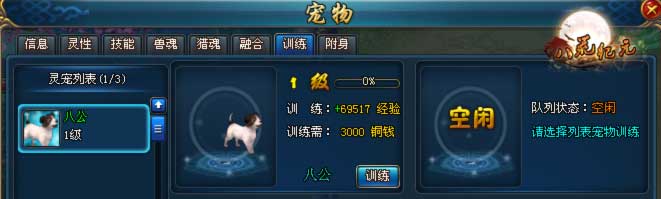 灵宠系统是《八荒纪元》最主要的特色系统之一,一只好的灵宠有着举足轻重的地位,灵宠不光可以召唤出来协同战斗,还能与角色附体增加角色的各项属性,这里给大家推荐个小心得,玩家初期得到的灵宠是“八公”。完成任务获得“八公后”大约再完成1到2个任务就有足够的铜钱可以在灵宠界面训练灵宠了,大可不必等到后面提示出来。