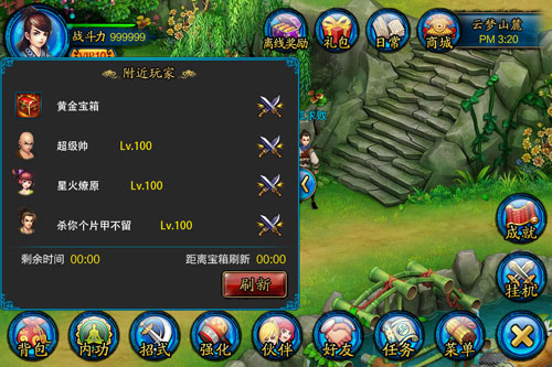 《叫我大侠》不删档内测新增的大逃杀玩法让你热血沸腾,多人PVP战斗激起你血脉之中的不安分因素。在《叫我大侠》独创的招式系统调配下,战斗力不再是唯一的胜败决定因素,合理的招式编排创造出独一无二的武功,让你享受酣畅淋漓的打击快感,在大逃杀之中一战封王!