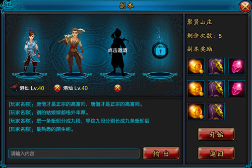 《叫我大侠》不删档内测将带来全新的五大副本群,分别是聚贤庄之乱、血战光明顶、楼兰之谜、勇闯绝情谷与梦回黑木崖。只要玩家达到35级,就可以挑战第一个副本:聚贤庄之乱,通关副本,更多侠义丹、不屈宝石、血魂宝石、五彩石等珍贵奖励等你来拿哦!