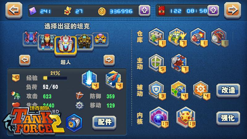 《坦克部队2》最好玩的不仅仅是坦克有了技能,更在于它有一套完善的坦克养成系统,玩家可以通过闯关获得经验给坦克升级以提升攻防等属性,还可以自由搭配和改造坦克技能,打造独一无二的战场英雄,更可以给坦克装备配件来提升综合实力。早在《坦克部队!》的时候就有玩家提出“速度流”和“血甲流”的概念,相信在《坦克部队2》里,会有更多的玩法被发掘出来。