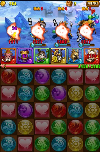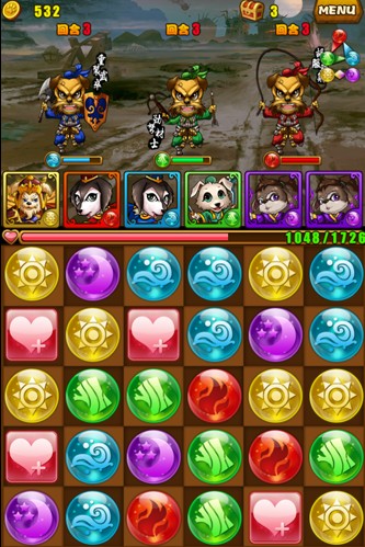 还有一种关卡的大boss是由几个野汪组成的联合军,通过每回合的不断攻击,让玩家疲于补血与进攻,顾此失彼。对付这样以多欺少的boss们(虽然理论上来说,玩家一直都在以多欺少…),我们的最好办法就是,先集中火力干掉一个目标,然后逐个击破。