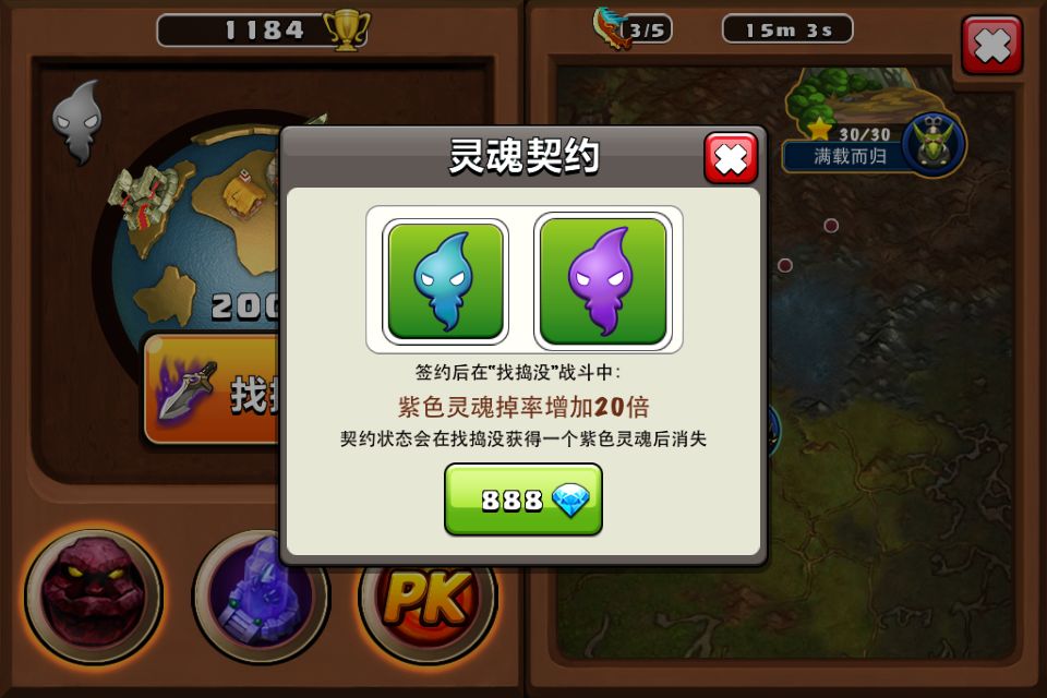《捣捣塔》特殊炼魂养成系统,让玩家通过战斗收集英雄灵魂,进行升级养成,提升英雄属性。然而,较高阶的紫色灵魂掉率不高,往往成为了英雄超神道路上的一大瓶颈。在《捣捣塔》IOS越狱版V2.0.1版本更新中,灵魂契约玩法的出现,大大降低了玩家获取英雄紫魂的难度,为提升英雄等级、实力更进一步提供了快捷通道。