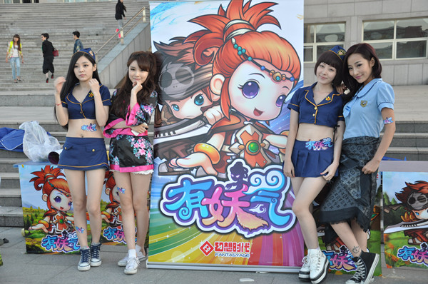 作为手游《有妖气》的主题电影,游戏与电影关联更为紧密,紧扣电影的故事情节,将美女、屌丝、励志、爱情这些元素进行融合,电影中的主角酷爱玩游戏,带着闺蜜、好友一起打副本,而且因外形娇美,身材火辣,入选《有妖气》的校园形象大使,担任游戏的Coser,可谓乐在其中。