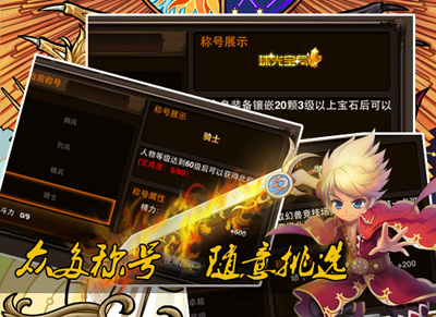 那位玩家问了,刷副本我要高攻击,打竞技场我要高血量,命中不够称号最好给我补上,顺便每天还要多回一点精力,这样行不行?哼哼,小编很负责任的告诉你,这些全都有!小编表示自己就是这么玩的:在打竞技场的时候,默默换上加生命的称号,打副本的时候,换上我命中攻击的属性,下线前还不忘换上加精力的称号,这样每天上线都能比别人多几点精力,天啊我真是太机智了!