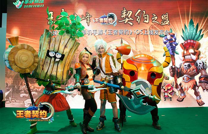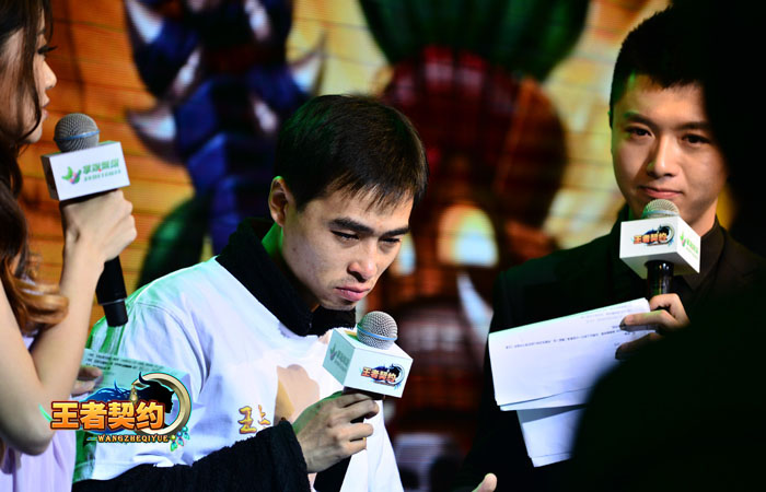 发布会现场嘉宾云集,火爆异常。更有火爆亮点:《王者契约》制作人讲述产品时泪洒现场:研发过程不易,在项目推进周期中,团队核心成员接连遭遇疾病住院,甚至有人开玩笑说这是一个被“诅咒”的项目……讲到此处,该制作人落下了激动的泪水。现场一度气氛压抑,主持人尝试岔开话题,问及如何坚持走到现在,他说累了烦了,就上网看看女神。而他心目中的女神,正是2012ChinaJOY红极一时的雅典娜歪歪。也正是因为他的喜欢和坚持,触动了掌娱无限在发布前一周找到雅典娜歪歪,并让其代言《王者契约》。
