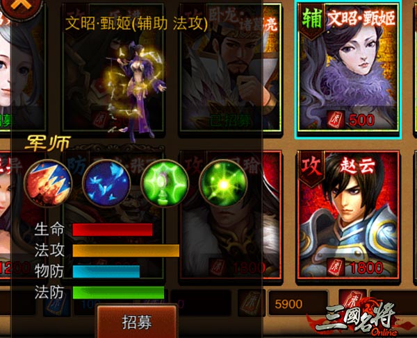 接下来的这位,是国色天香的妹纸武将。谁说“自古英雄皆好汉,少有大将是巾帼”?在《三国名将》游戏里,美女武将王元姬凭借其秒杀一切的大招,成为玩家最爱的武将。在这次的版本更新中,重磅推出的妹纸武将“文昭.甄姬”, 不仅具有恢复、救死扶伤的奶妈功能,又能出其不意的袭击敌人。新武将甄姬,会不会成为玩家心中的一代女英雄呢?非常值得期待。