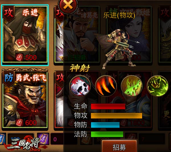 第三位上场的武将,会是何许人物呢?他就是大名鼎鼎的右将军“乐进”。乐进,字文谦,以胆识英烈而从曹操,随军多年南征北讨,战功无数,后世将其与张辽、张郃、于禁、徐晃并称为曹魏“五子良将”。武将张辽爆发的威力,相信《三国名将》的玩家们都不陌生了。那么“乐进”的加盟,会否让玩家如虎添翼?这就有待玩家们进入游戏,亲自体验一番。