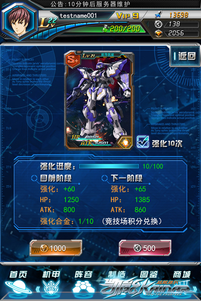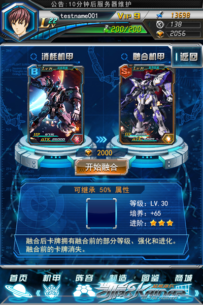 对机甲进行后天改造,是获取强大战力的另一条途径。游戏中可对机甲进行融合、强化、进阶。强化和进阶,都是针对机甲自身属性的提升手段,可提升机甲自身的生存能力与攻击实力。而融合则是将空闲机甲的强化等级、进阶星级转移到目标机甲上,此系统也是最大限度上保留机甲价值。让先前投入到机甲上的精力,以融合的方式转移到新机甲上。另一台空白机甲,瞬间拥有超强的战斗实力,战斗的胜利还不就是唾手可得。