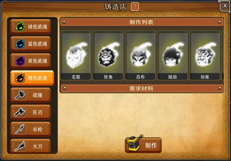 武魂铸造:当你和某位武将好感度满值后,可获得武魂制作图纸,收集指定材料即可制造。